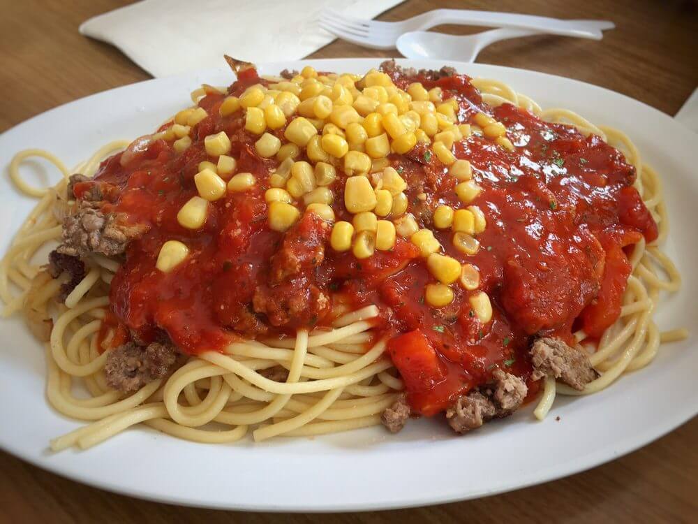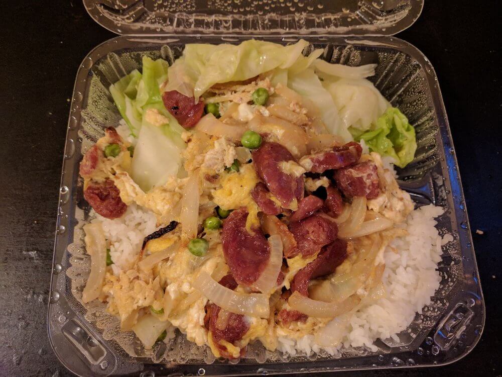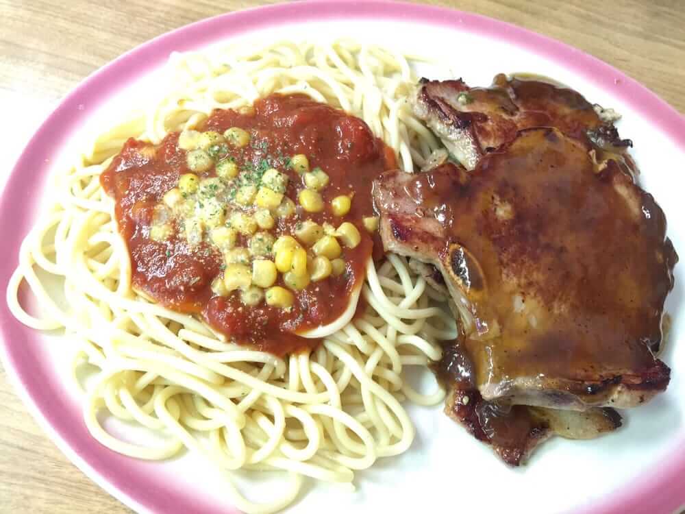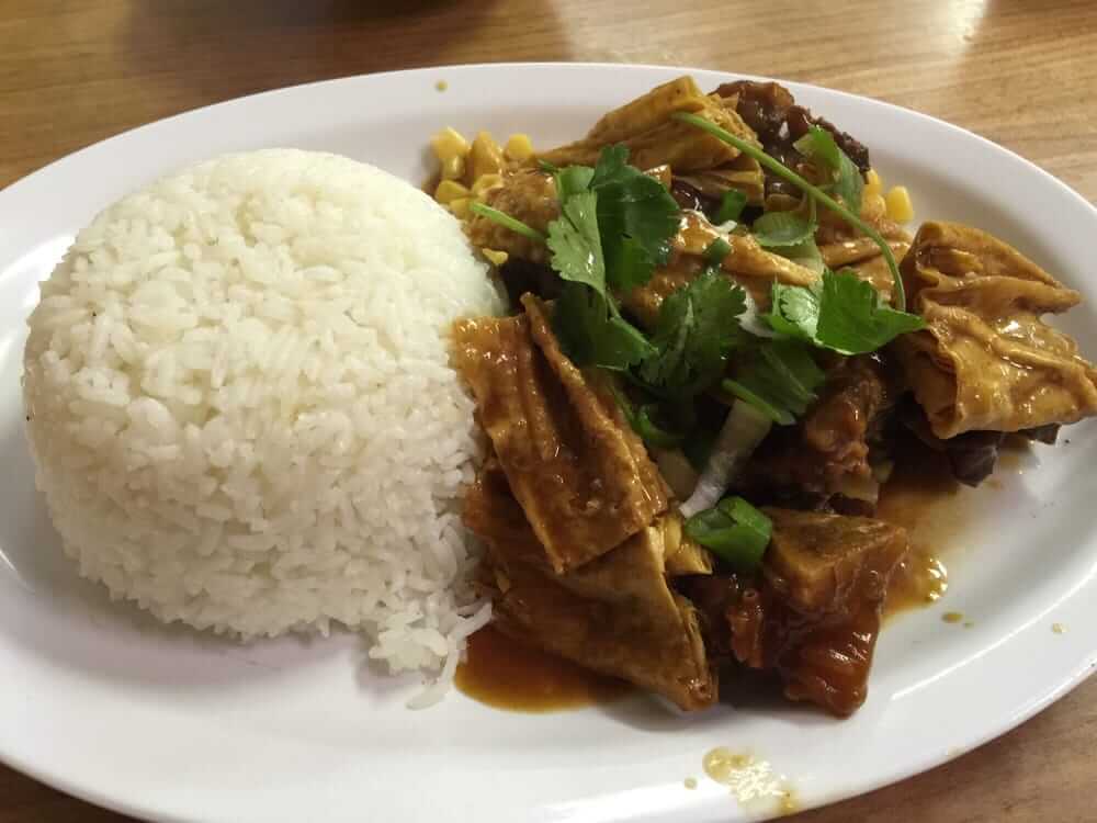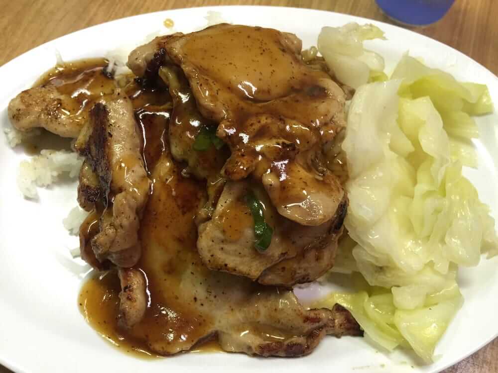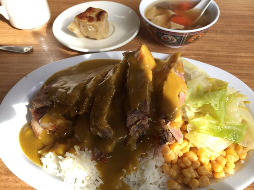 Soup and one free dumpling came with the order. Helpful waitress. Filled the craving for Hong Kong style canteen food. Ordered one roast pork plate with gravy and corn; one pork chop (teriyaki sauce) with onions and cabbage. Generous portions.